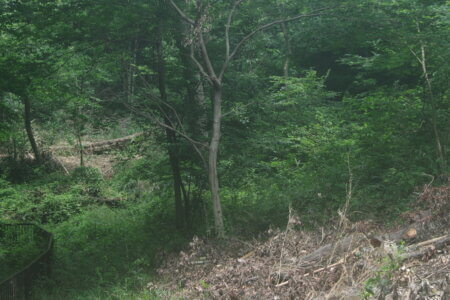 どちらかというと薄暗かった場所が、たくさんの木が伐採されて、ガンガン日が当たる斜面となっているところもありました。