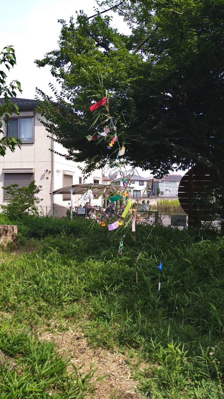 七夕ということで、手ごろな竹を切り出して、出会いの広場に立てました。